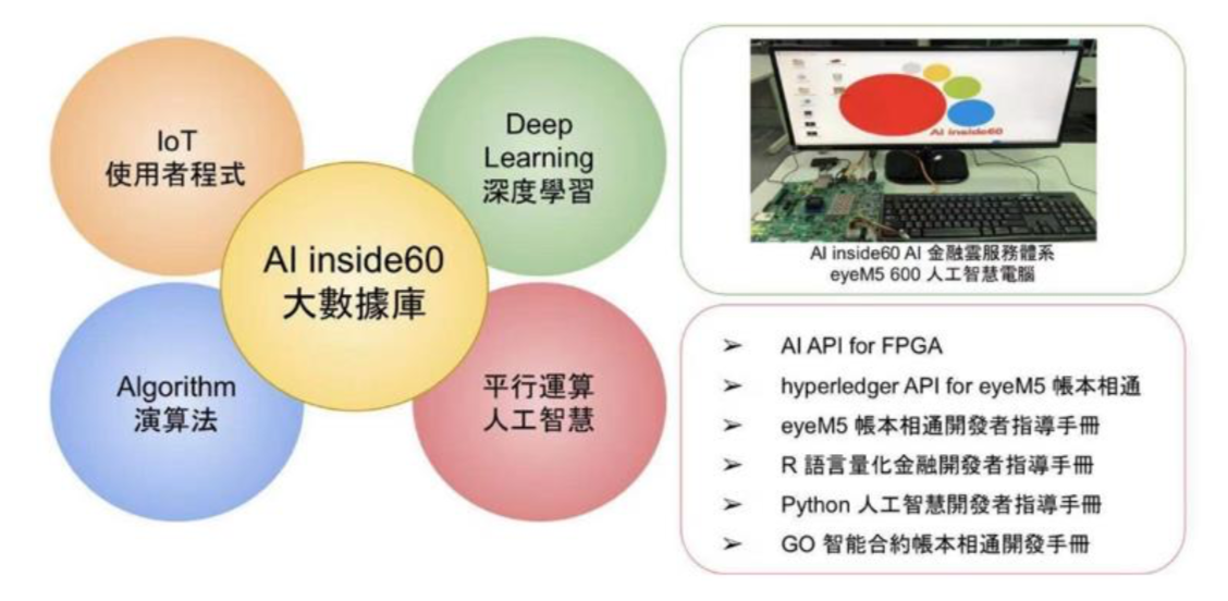 - eyeM5 9500 账本相通服务器,内建 eyeball55 之 AI 芯片,其目的是作为一种安全区块链之中间件,旨在通过允许智能合约访问关键链之外部资源,例如数据库等。